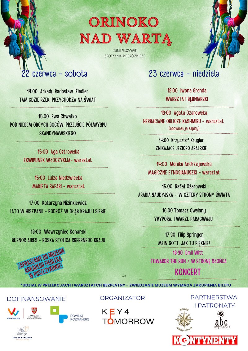 Organizatorem Puszczykowskich Spotkań Podróżniczych ORINOKO NAD WARTĄ jest Fundacja Key 4 Tomorrow